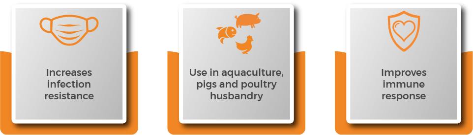 A purified yeast beta-glucan, Ohly-GO® Glucan improves animal immune status and increases resistance against microbial infection. It can be added to feed to help replace antibiotic growth promoters, to improve feed conversion ratios and to reduce mortality.